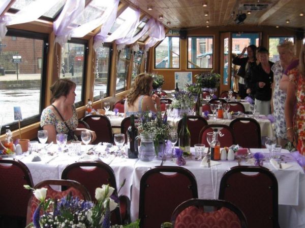 Lovely LB Hardfeet, the boat of A & G Passenger Boats, traverses the Sheffield and Tinsley Canal for 3 miles from Victoria Quays. The bespoke-fitted boat accommodates its passengers in comfort as the interior space has been opened up completely so that any table arrangement, suitable for a variety of events, is possible. Windows are double-glazed, there is air conditioning and central heating, effectively taking care of the indoor temperature. For a breath of fresh air, visit the viewing deck. Welcome on-board facilities are the fully licensed bar, and comprehensive dining possibilities to choose from. You can therefore reserve a table on one of myriad cruises on offer or charter the entire boat for anything from a wedding to a workshop. What sets this boat’s service apart is that it is also available in the evening. It is truly a matter of what takes your fancy!