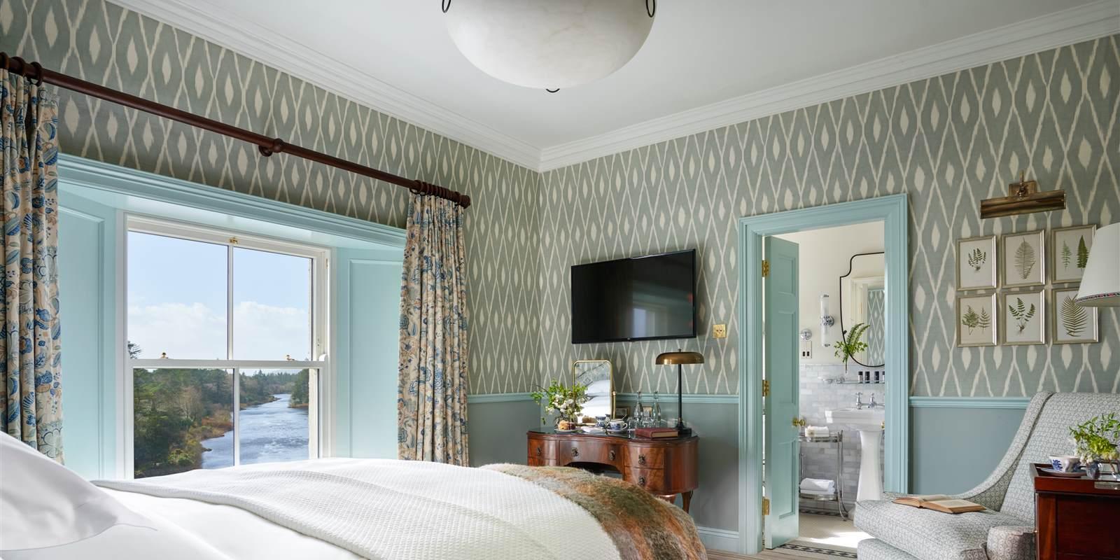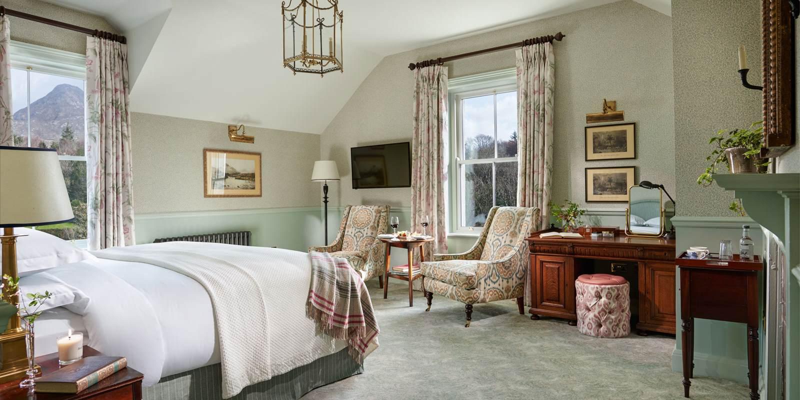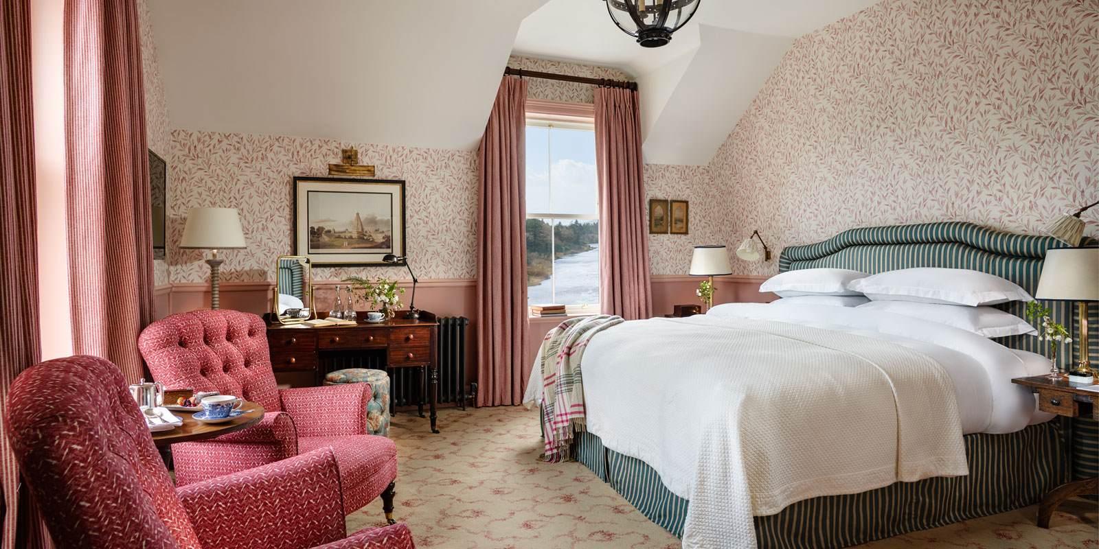 If you’re looking for a little serenity, and stunning natural surroundings; Ballynahinch Castle Hotel in Connemara, Ireland, is set amidst a hundred acres of spectacular grounds and the wild, untamed beauty of Connemara’s rugged mountains. Multi-Award winning: voted as one of the “Top 10 Resort Hotels in the UK and Ireland” this unique property, was built on the site of a former castle, and lies beautifully on the edge of Ballynahinch lake and River. Rooms are spacious and restful, with outstanding views of the encircling estate. Beds are sumptuous and comfy, with freshly refurbished bathrooms, and luxurious creature comforts, with garden rooms offering outdoor seating, which overlooks the river; perfect for a romantic weekend. Ballynahinch Castle was voted Hotel of the Year by Food and Wine magazine, 2021, and prides itself on using only the very finest local & estate produce.
