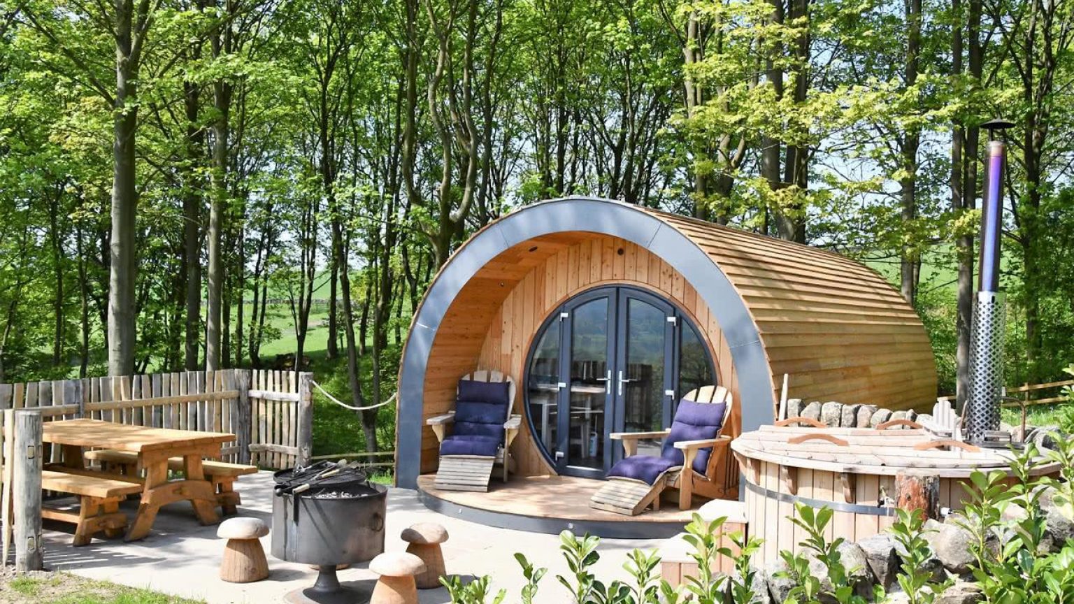 Located in the South of the Yorkshire Dales, embark on a unique glamping and camping experience. This family run farm is truly exquisite, and offers fantastic accommodation options for all the family. It was even once named in the Telegraph newspaper, as ‘one of Britain’s top 5 coolest campsites’, The reception is in the the farmhouse, and is super cosy. As soon as you walk in, a warm and friendly atmosphere welcomes you. With beautiful panoramic views from the site, the campsite field is spacious, and has impeccable facilities. A fun playground with a tiny stream running through, creates a magical atmosphere for small and big children alike. You can also submerge yourself in complete luxury by staying in one of the sumptuous Timber glamping pods, or elegant Bell tents. Both exquisite choices, they have their very own log fired hot tub located on a private patio.