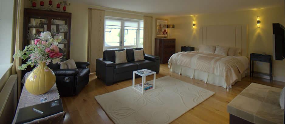 Dún Ard was featured on the RTE TV program, SHOWHOUSE. Each room throughout the house was elegantly designed by local designer, Nina Kati, using the finest of materials. We have continued to add out own personal touches to make our guests feel at home in the luxurious surroundings.Dún Ard is built on three levels with plenty of light and space. All three bedrooms are en-suite, two with luxurious Jacuzzi baths. The ground floor bedroom boasts a double Jacuzzi bath and has it's own private sauna in which to unwind after a long and stressful day.Glass paneled on one side, the guest sunroom opens onto a large balcony where guests can sit and relax, enjoying the panoramic views of the magnificent seascape and mountains in the backdrop.