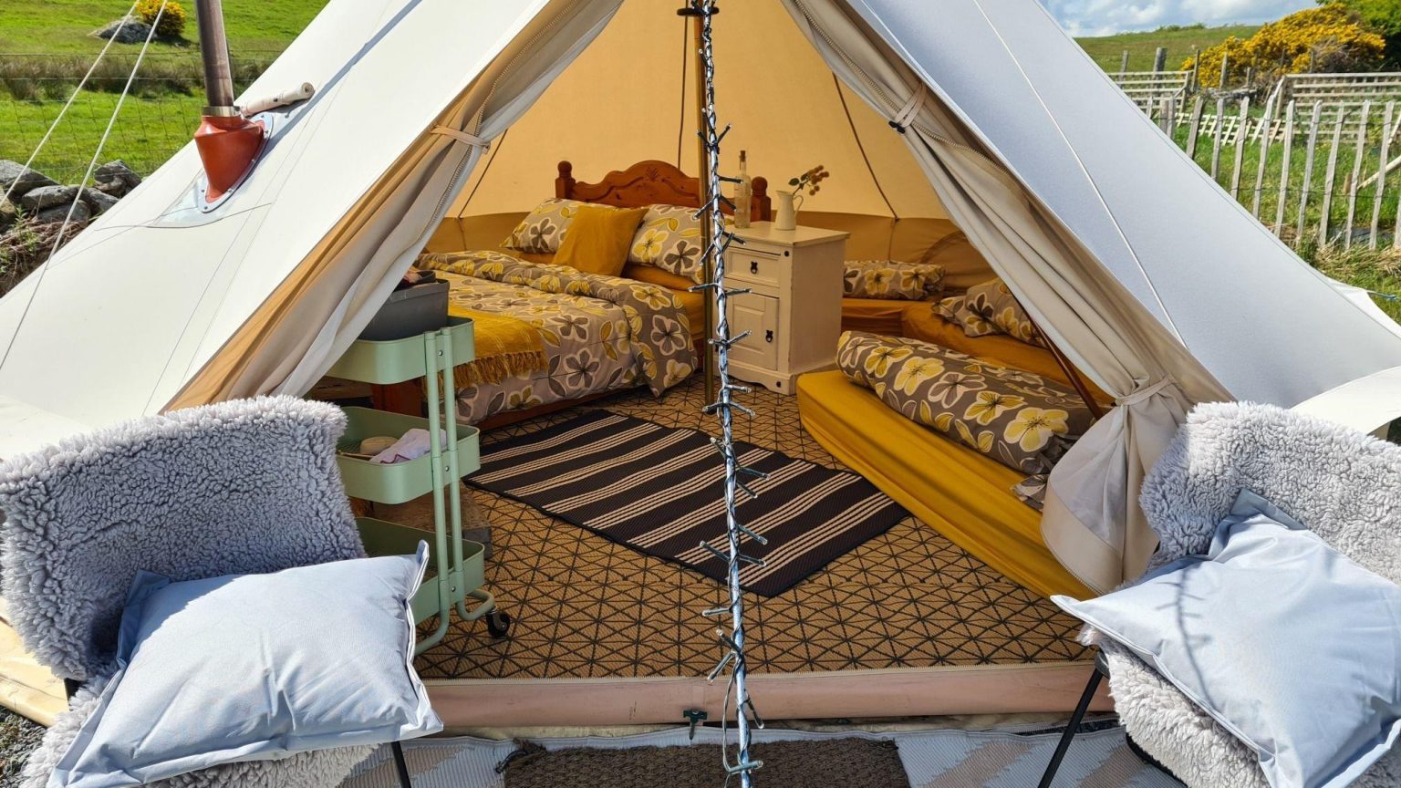 Relax and take in the tranquility of this Irish glamping site. Spending a few days here is always a good idea, and they are dog friendly too! Ideally located in Castlewellan, a picturesque town in County Down, this destination will charm all. The hosts, Tanya and James, are so friendly. They are always around if you need anything, and they have ananswer to most questions. The bell tents look stylish, they have impeccableamenities, and a gorgeous wood burning stove too. Whether you decide to have a BBQ, or to snuggle up near the fire pit, the atmosphere is ever so welcoming. Looking for a romantic getaway? They actually have incredible couples tents here! Always a wonderful option, they are so cosy, and simply beautiful. Escape Glamping is an all-round fantastic experience, and a great base to explore the hidden gems of Northern Ireland.