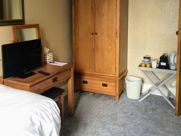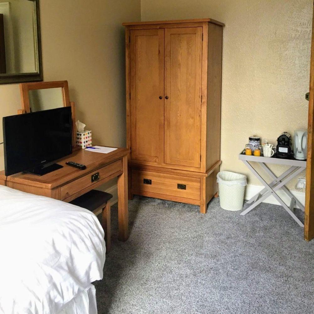 A spacious double room featuring a double bed, ensuite bathroom with shower, tea & coffee making facilities, WiFi and TV.