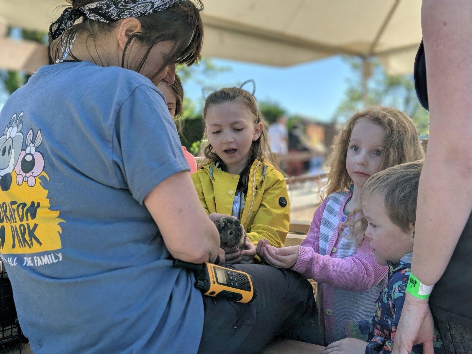 At Manorafon Farm Park, we have so much fun to offer come rain or shine! With lots of animals and a whole range of outdoor and indoor play, the farm makes for a fantastic family day out. Pick-up your cup of animal feed upon arrival at the farm and head down to the Field Trail. Here you can meet our larger farm animals – they love to nibble feed from your hands! Say hello to alpacas, sheep, horses, donkeys, pigs, and a whole variety friendly of goats. Be sure not to miss the exciting Pig Races too. Wave your flag and cheer for your winning pig! To get up close to our smaller animals, pop over to the Farm Yard. Our sheltered ‘Pet’s Corner’ hosts ranger led animal handling sessions at intervals throughout the day. Join in to cuddle our cute bunnies and stroke our baby chicks. If you want to meet some more exotic animals, the Reptile Hut has geckos, toads, snakes and more! Throughout the year, we host events including the Great Easter Eggsperience, Pumpkin Fest, the Dinosaur Adventure, and our Christmas Experience. There is something to put a smile on everyone’s face at Manorafon Farm Park.