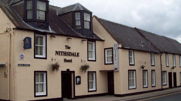 The Nithsdale Hotel is situated in the heart of Sanquhar on the A76, halfway between Dumfries and Kilmarnock. Free WiFi is provided throughout the hotel and free parking is available at rear. It offers 14 en suite bedrooms, and guests can relax by the fire and enjoy a drink from the fully stocked bar with a good selection of draught beers, malts, spirits, cocktails and wines. The hotel is home to Athena Hair & Beauty salon, which offers wide range of treatments including massage, manicures and pedicures. Advanced bookings are advised. Local attractions include the oldest working post office in the world, the Tolbooth Museum, Crawick Multiverse, Drumlanrig Castle and fishing in the River Nith.