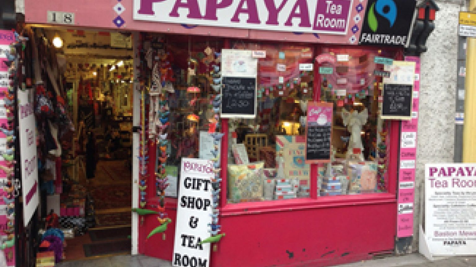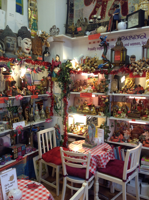 Papaya is something entirely unique in Hereford, with East meeting West in a relaxing, yet vibrant and colourful environment. From the dream of a shop, grew the idea of a tea room, completely integrated into the space adding the aspects of flavour and texture to the visual and audible experiences of the east. We have a very large and ever-expanding selection of traditional English teas, green teas, Indian teas, fruit infusions and coffees, along with a selection of traditional home-made cakes, scones, crumpets and tea-cakes and more substantial snacks like baguettes and toasted sandwiches.