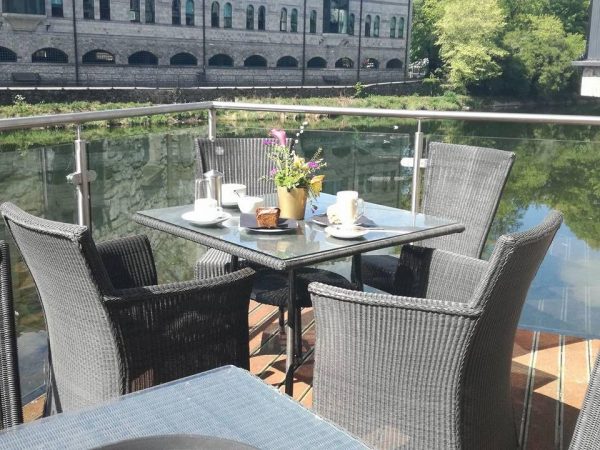 The Riverside Hotel, a converted 18th century tannery set on five floors, is situated on the banks of the River Kent in Kendal beneath the ruins of the town’s 12th century castle. A short walk away is the centre of this famous market town with its bustling shops, galleries and museums. It’s also close to the train and bus station, is only a 20 minute drive from Lake Windermere and convenient for all the must-see attractions.