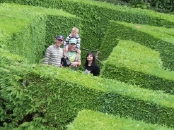 The Jubilee Maze is one of Britain's most famous traditional hedge mazes, with a romantic temple at the centre and over a kilometre of hedge planted by Lindsay and Edward Heyes in 1977.