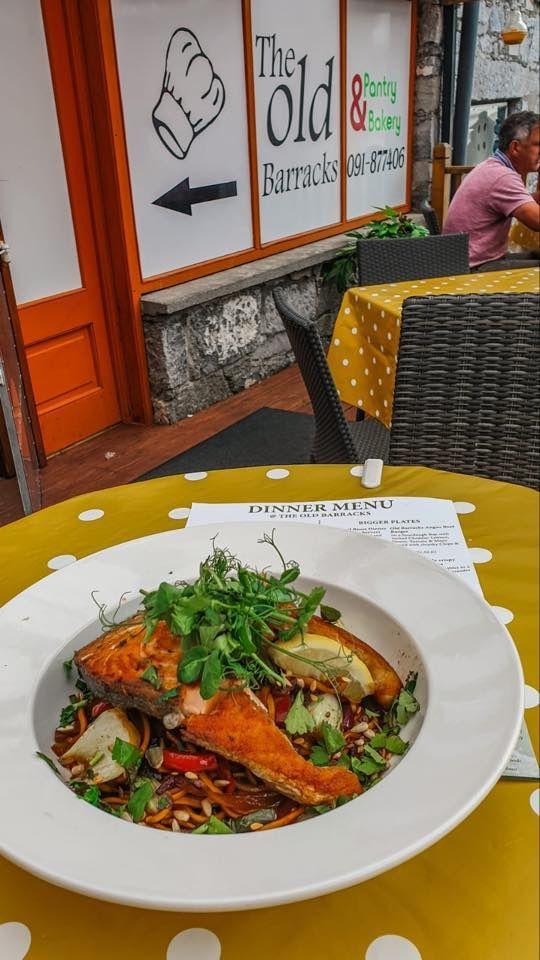 The Old Barracks Café in Athenry is a true gem, offering the perfect spot for a delightful lunch or a cozy coffee and cake break. Their freshly baked bread is simply exceptional, with a taste and texture that’s hard to match. It’s no wonder this café has earned a second mention in my Irish book! The atmosphere is warm and welcoming, making it an ideal place to relax and enjoy a delicious meal. For those with a sweet tooth, the deli and cake shop across the road is an absolute must-visit. Their selection of cakes is divine, rich, indulgent, and beautifully presented. Each bite is a sweet treat, showcasing the care and craftsmanship that goes into every creation. Whether you're stopping by for a hearty lunch, a cup of expertly brewed coffee, or a slice of heavenly cake, the Old Barracks Café is an experience most certainly not to be missed.