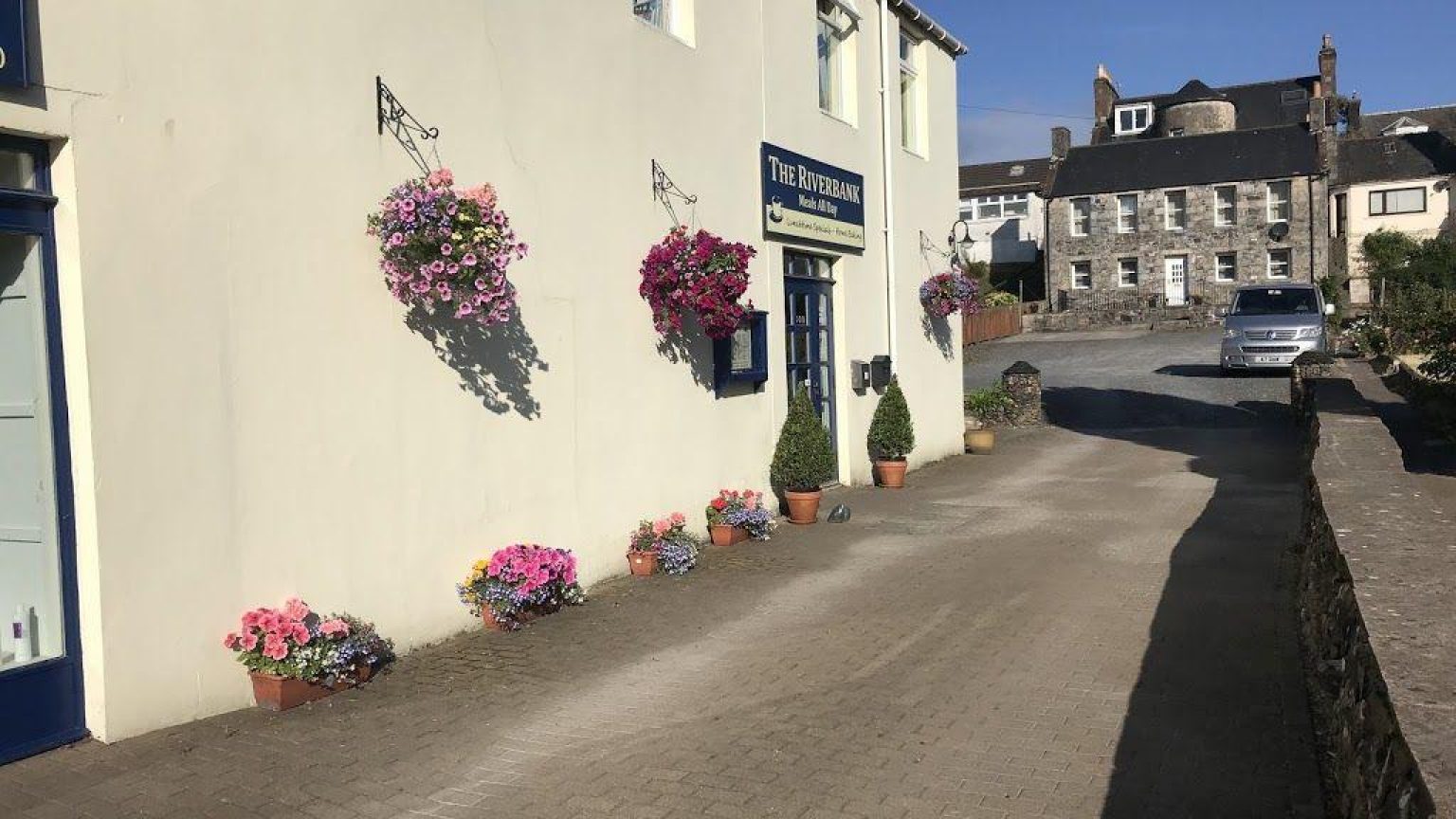 Enjoy The experience at The Riverbank Restaurant Tea room/ Coffee shop/ Restaurant, situated next to the towns 2 major Supermarkets (Aldi & Sainsburys) and The main parking area (Secure parking at rear for Mountain bikes). Home baking, local produce, licensed, high quality and value for money. Excellent views over The Galloway forest, Cairnsmore of fleet and The River Cree. An Excellent starting point for your days activities in the Galloway hills region.