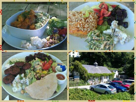 The cafe is combined with a health food shop. Freshly made, largely organic food, all vegetarian with many vegan options. The soup is always vegan and they always have two or more vegan mains, along with the salads. Here, too, the potato salad and coleslaw were both vegan on the time our researcher went there. Examples of vegan meals are: falafels with pitta bread, hummus and salad; sweet potato and leek bake with salad; and salad plate with hummus. There are also vegan panini and rolls, cakes, children's meals and ice cream. Soya milk is available for tea, coffee, cappuccinos, hot chocolate, etc. A great place for vegans.