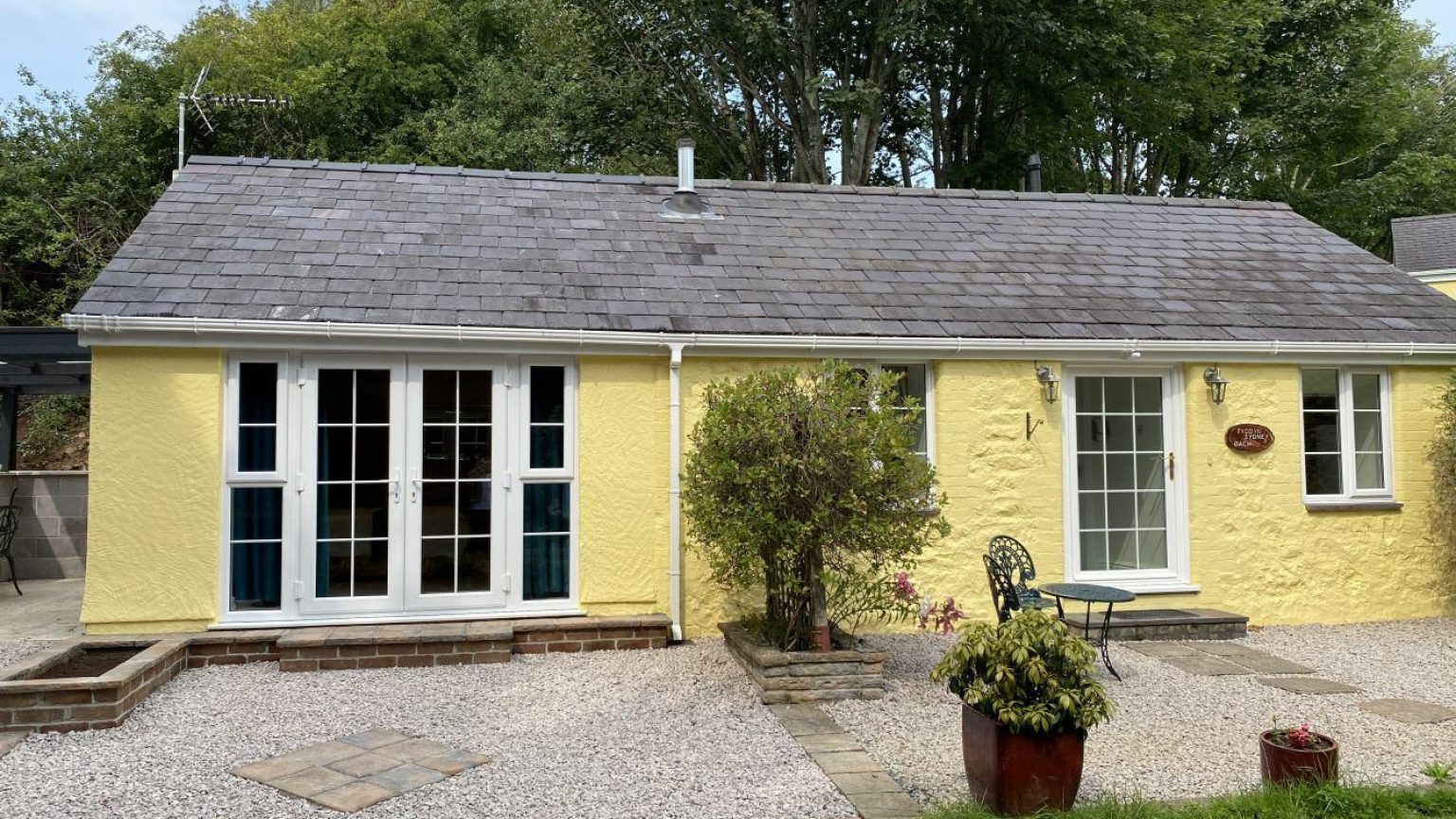 Reminiscent of Gerald Durrell’s childhood home in Corfu; the daffodil yellow villa: Tyddyn Sydney Bach, set in emerald green grounds, shines bright and welcoming as the midday sun. This gorgeous cottage is situated in the village of Treborth, just outside Bangor, close to the Britannia bridge crossing to Anglesey. The cottage makes a perfect getaway from the pressures of our daily lives, and just enjoy a little quality time together. The open plan lounge-kitchen-diner, exposed beams and vaulted ceiling, create a harmonious blend of traditional and modern. A sumptuous bedroom with an immaculate, shiny bathroom, all the furnishing is exceptional throughout. Outside there's a charming patio with garden furniture where you can sit and enjoy a drink or two beneath endless starry skies.