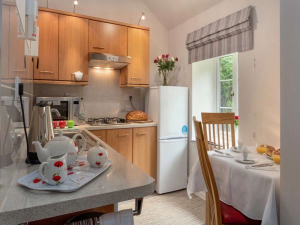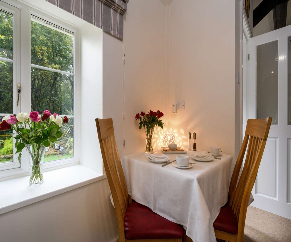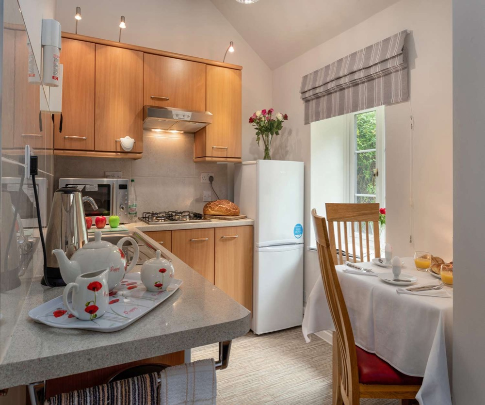 Discover self catering in Wales at Tyddyn Sydney Bach. A delightful Visit Wales 5* garden studio cottage sleeping 2 with its open wooden beams and high ceilings. It has an open plan kitchen /lounge/ bedroom with separate bath room furnished and equipped to high standards. Towels, bed and table linen are included. Outside there is garden furniture complete with parasol. Tyddyn Sydney Bach has invested in Far Infrared heating panels. Far Infrared heat is healthier, more comfortable, and a more efficient method than any other source of domestic heating. Upon your arrival, Tyddyn Sydney Bach welcomes you with tea, bara brith, and fresh flowers.